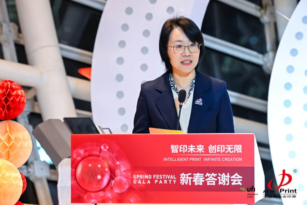 随后,中国印刷科学技术研究院上级单位代表中国文化产业发展集团党委委员、副总经理常晓霞,杜塞尔多夫展览(上海)有限公司总经理顾燕也分别致辞,介绍了各方对2026全印展的筹备情况,并向全体参会嘉宾献上新春祝福。